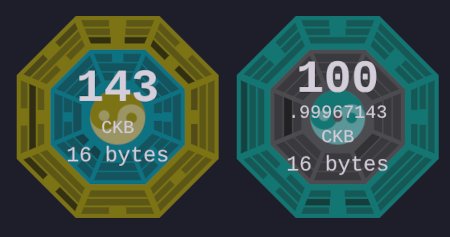 Cells are represented graphically in the playground. The three layers of cells represent occupancy, type and lock from inside to outside. The filled center circle means that all CKB of this cell is used to store data.